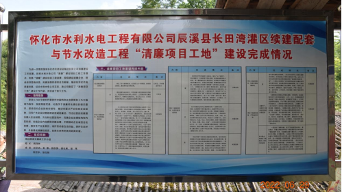 进一步贯彻落实怀化市水务投资集团有限公司清廉建设工作部署,夯实员工清正廉洁思想根基,让工地也吹起“清廉风”,以风清气正从业环境助力项目建设跑出“加速度”。水利水电工程有限公司将辰溪县长田湾灌区续建配套与节水改造工程打造成“清廉项目工地”